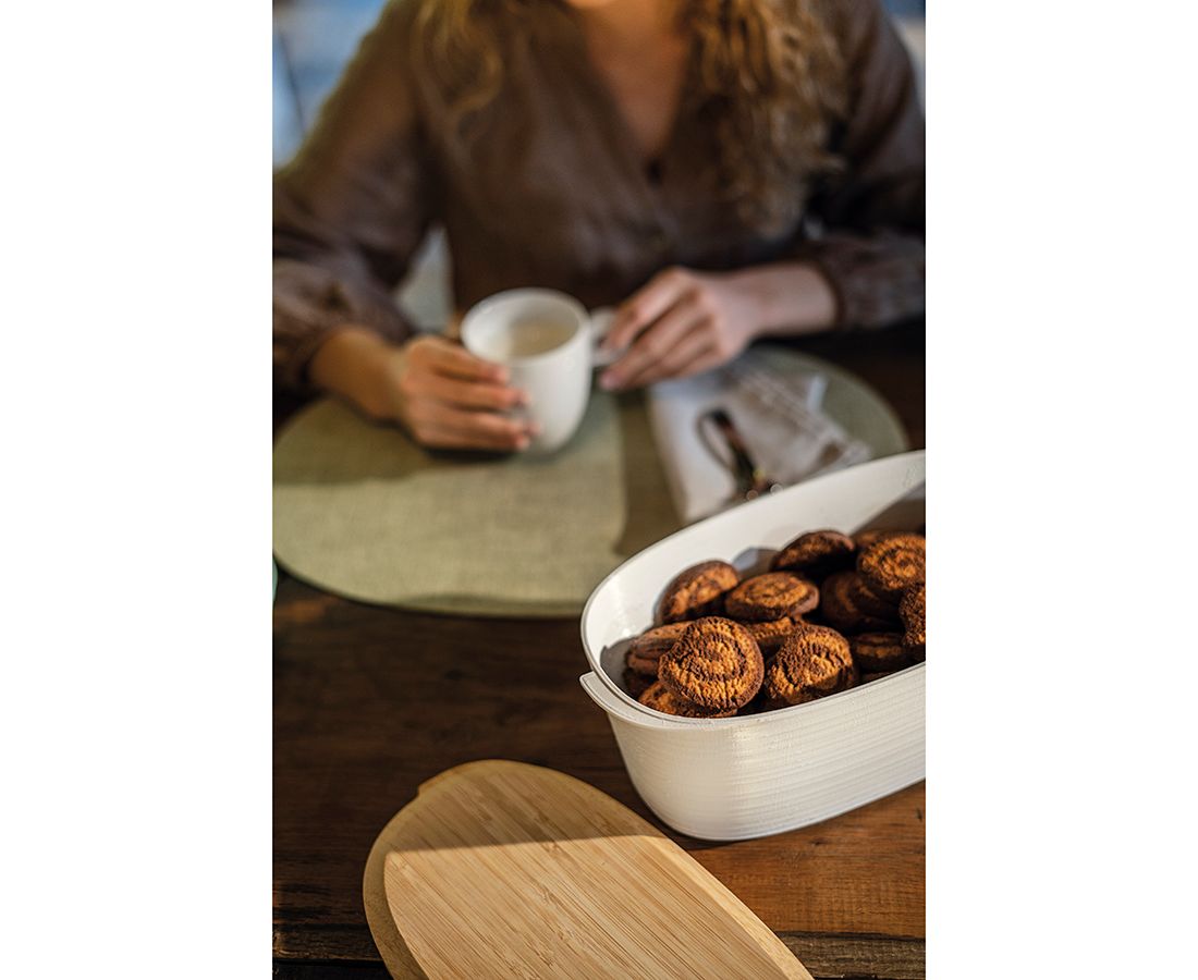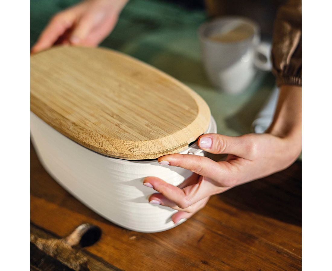 Хлебница из переработанного пластика с экологичной бамбуковой крышкой спасет выпечку от высыхания и украсит пространство.