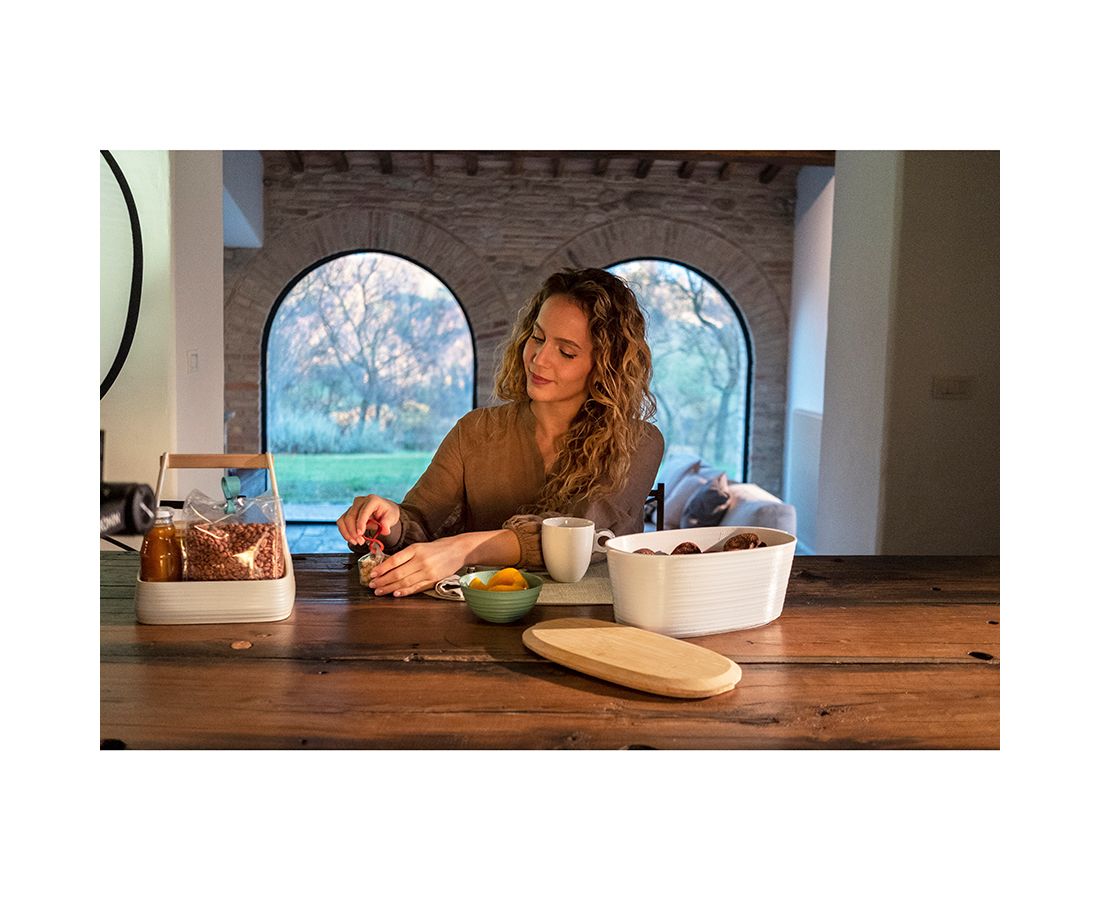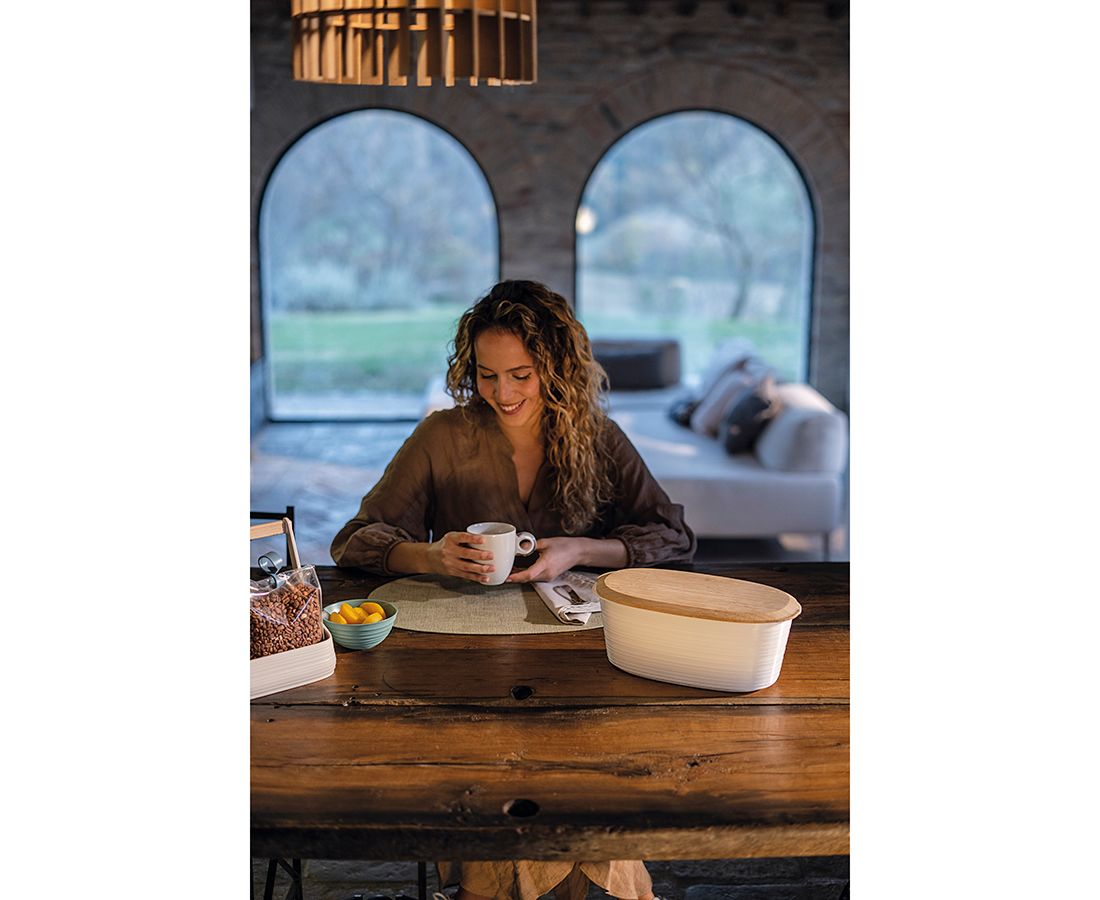 Хлебница с бамбуковой крышкой Tierra, 31,5х16,4х12,9 см, молочная, Guzzini