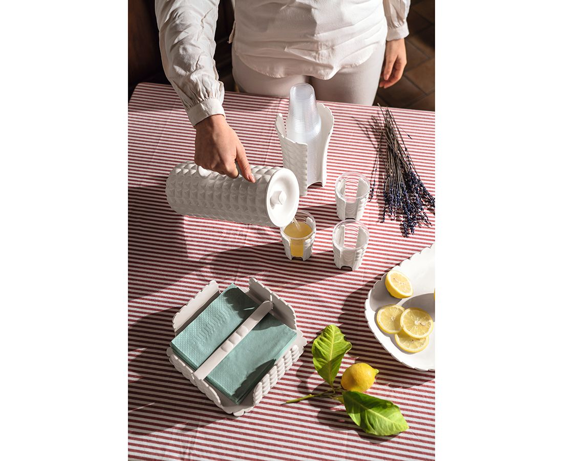 Рельефная форма с носиком удобна для наливания освежающих лимонадов, бодрящих соков и цитрусовых коктейлей. Горлышко кувшина оснащено небольшим фильтром, который пригодится при подаче морсов, компотов и других напитков с кусочками фруктов и ягод.