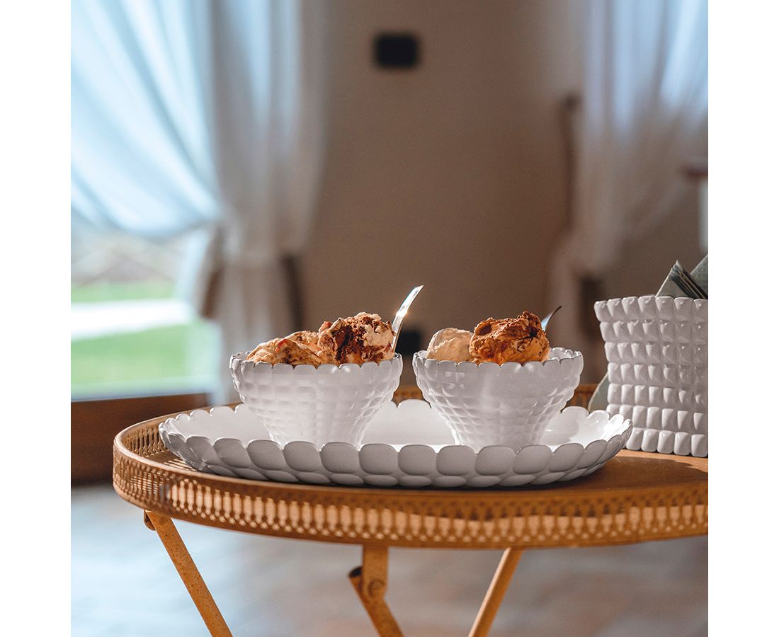 Поднос сервировочный Tiffany станет настоящим украшением любого стола. Его можно использовать для подачи различных угощений. Идеально подходит для сервировки на свежем воздухе – рельефная форма в сочетании с прозрачным материалом заставляет поверхность сверкать и переливаться на свету.