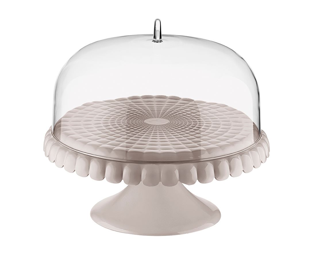 Блюдо для торта с крышкой Tiffany, 30 см, серо-бежевое, Guzzini