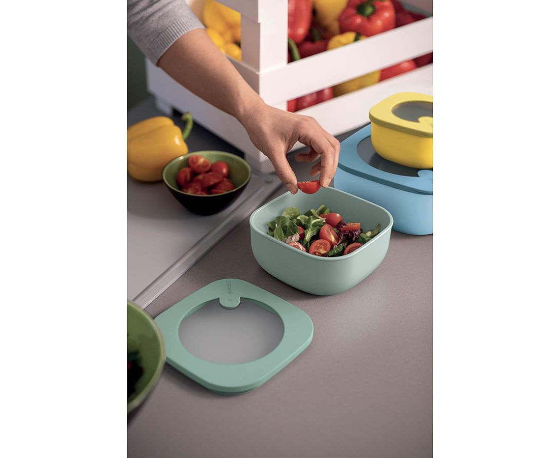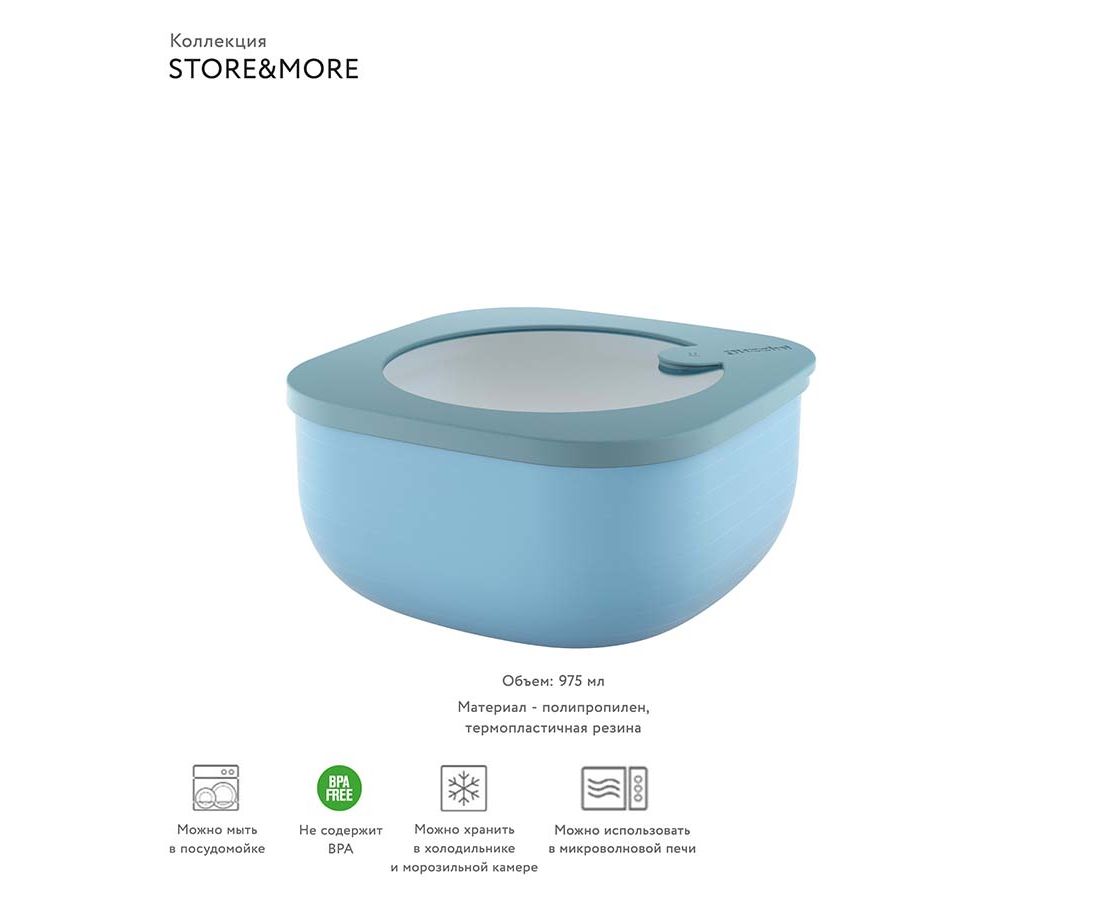 Пищевой контейнер Store&More объемом 975 мл идеально подходит для использования дома и на открытом воздухе. Посуда предназначена для хранения продуктов в холодильнике или морозильной камере, нагрева в микроволновой печи, транспортировки и подачи блюд. , ,Изделие можно взять с собой на дачу, пикник или на работу. Идея создания пищевого контейнера в форме куба с плавными обтекаемыми углами принадлежит дизайнерской студии Spalvieri & Del Ciotto.