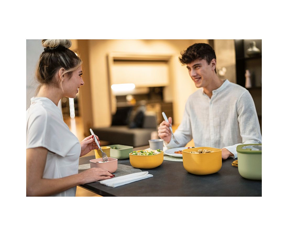 Пищевой контейнер Store&More объемом 975 мл идеально подходит для использования дома и на открытом воздухе. Посуда предназначена для хранения продуктов в холодильнике или морозильной камере, нагрева в микроволновой печи, транспортировки и подачи блюд. Идея создания пищевого контейнера в форме куба с плавными обтекаемыми углами принадлежит дизайнерской студии Spalvieri & Del Ciotto.