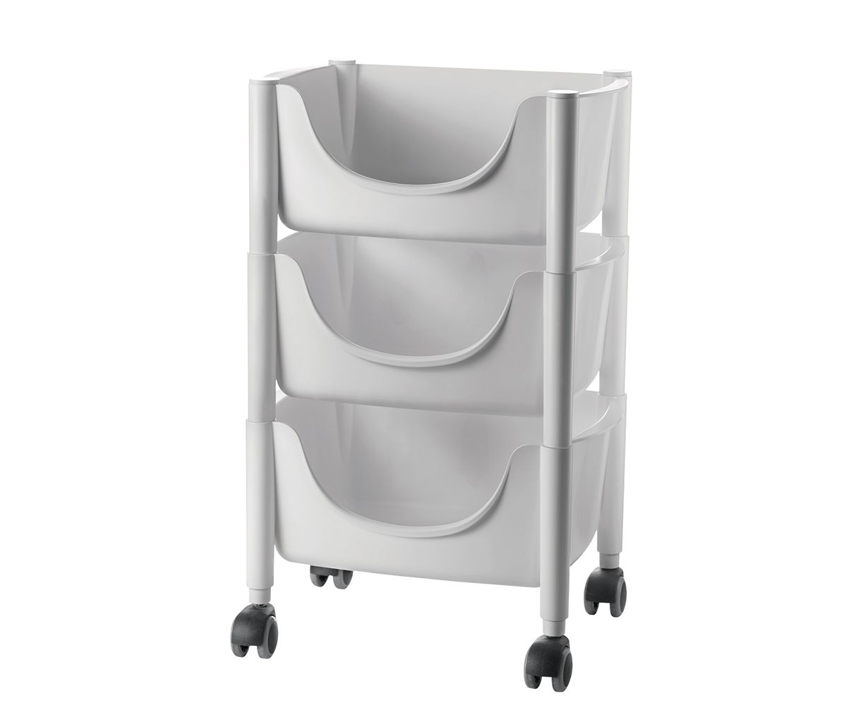 Полки легко передвигать по всему дому, а также можно разместить на веранде или на улице. Стальные колесики выдерживают вес до 50 кг. Необязательно собирать все три ящика вместе: вы можете использовать полки по отдельности или соединить только два яруса вместо трех. В любом случае, полки помогут сэкономить кухонное пространство и держать необходимые продукты под рукой.