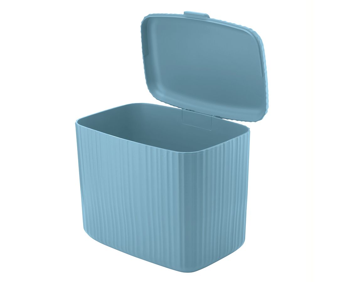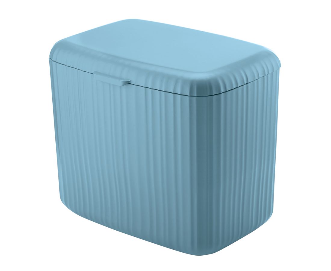 Изделие выполнено из переработанного пластика PET. Изделие покрыто специальным материалом с антибактериальными свойствами. Крышка открывается и закрывается одной рукой. Контейнер можно расположить на столешнице или повесить на дверцу кухонного шкафчика.