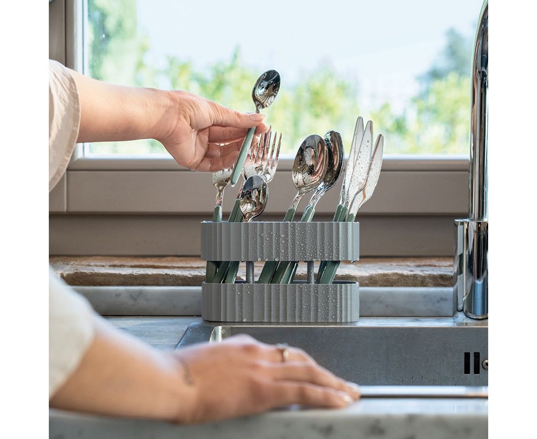 Сушилка для столовых приборов поможет навести порядок возле раковины.