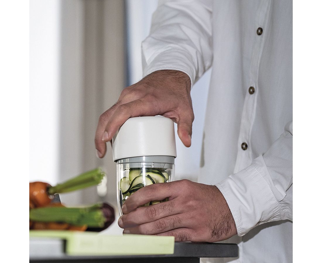 Терка-спиралайзер Spiralize&Go откроет новые возможности для приготовления легких и полезных блюд. Аксессуар идеально подходит для нарезки кабачков, цуккини, картофеля, огурцов, редиса и моркови на спирали разной ширины. В комплект входит насадки с двумя типами лезвия. Терка дополнена удобным зажимом, который не только защищает пальцы от повреждения во время нарезания, но и закрывает лезвия при хранении, препятствую загрязнению.