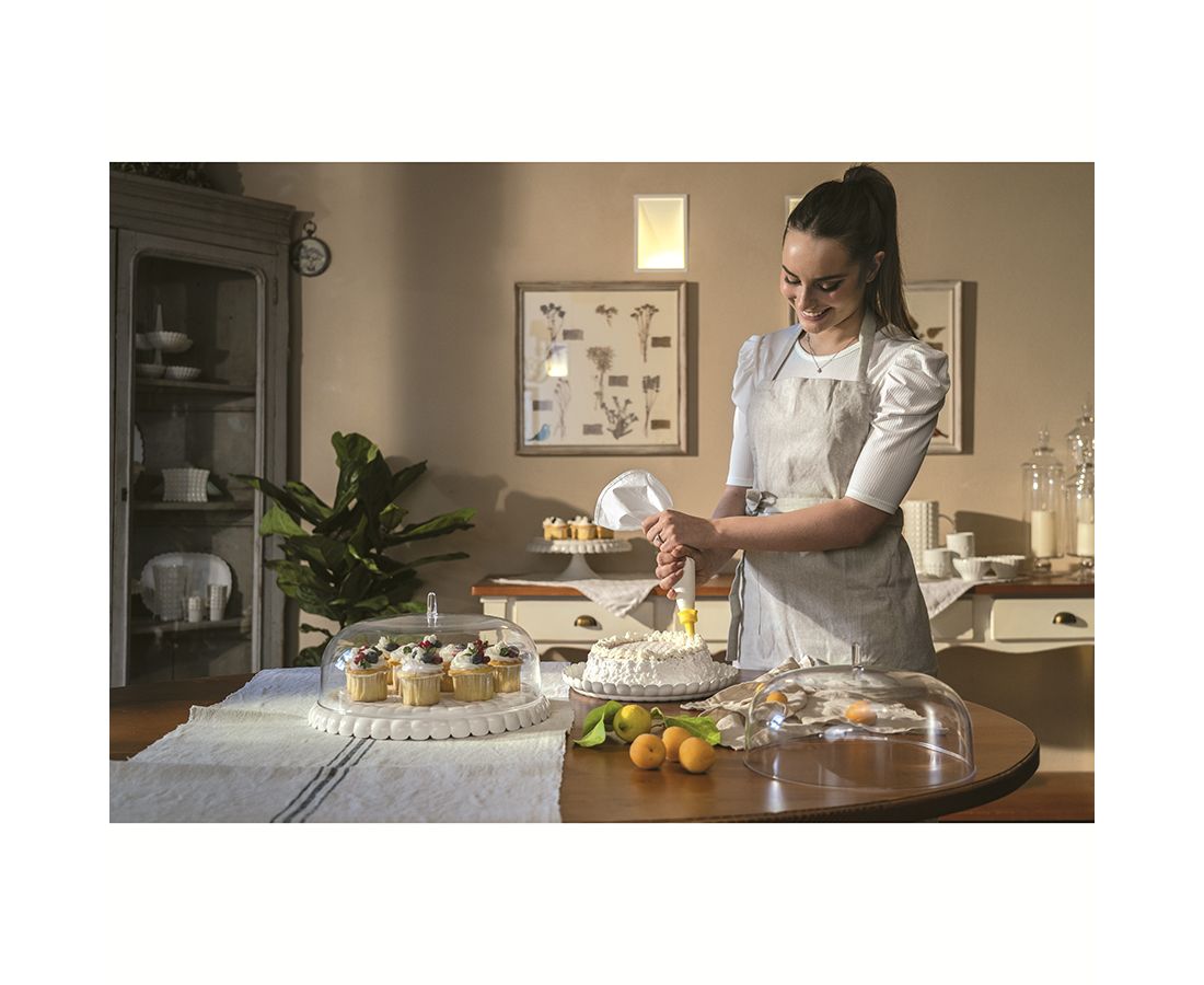 Блюдо можно переворачивать и использовать с двух сторон: загнутые края подходят для сервировки , ,выпечки и пирожных, а плоская сторона идеальна для подачи целых тортов и пирогов. Крышка защитит продукты от заветривания, пыли и насекомых, что особенно важно во время трапез на открытом воздухе. Диаметр - 36 см. Купол изготовлен из высококачественного органического стекла, устойчивого к износу и повреждениям. Материал не содержит вредных примесей и бисфенола-А.