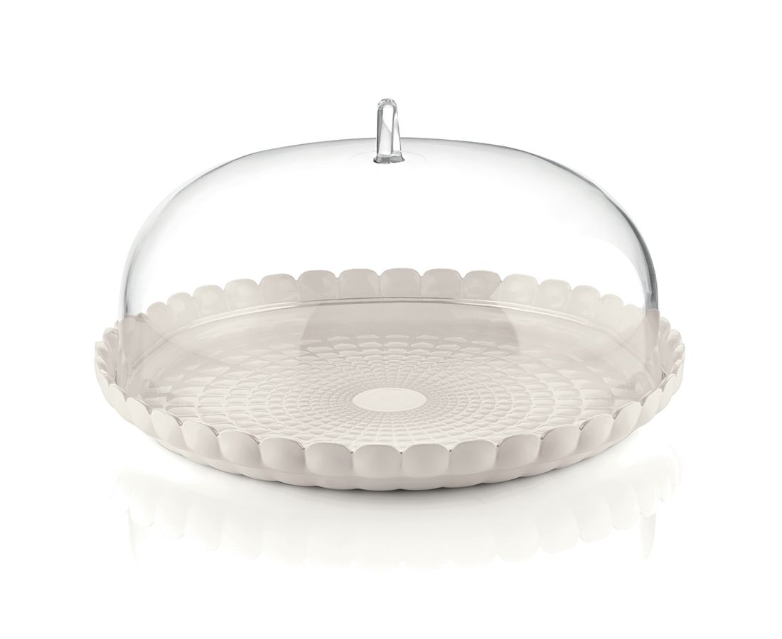 Блюдо сервировочное с крышкой Tiffany, 36 см, молочно-белое, Guzzini