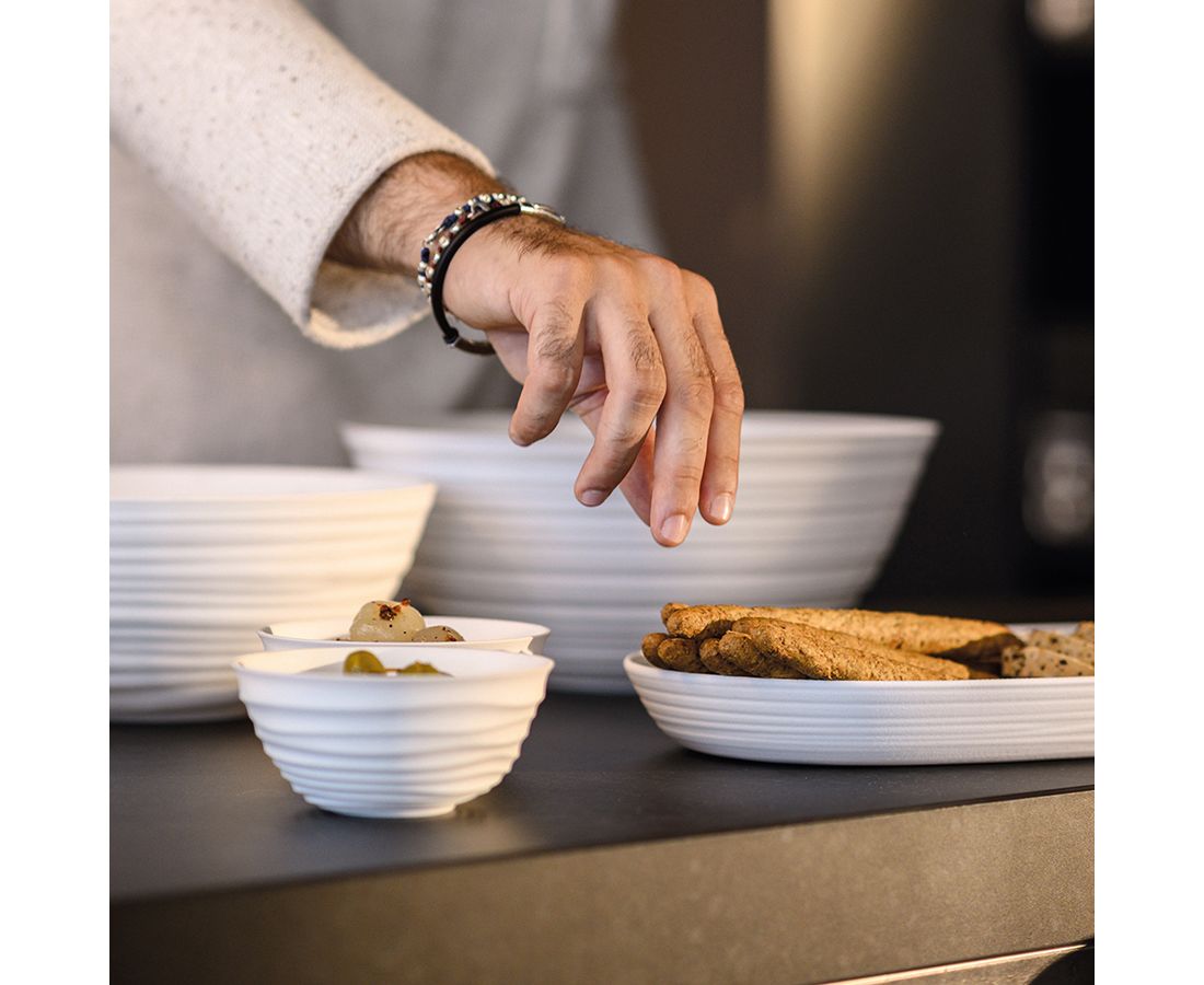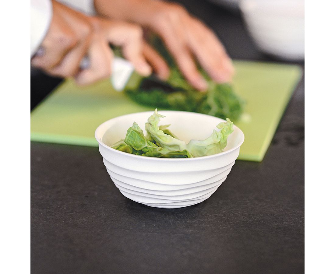 Прочная миска из переработанного пластика подойдет для подачи супов и закусок.