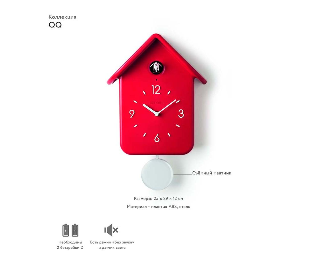 Часы с кукушкой QQ, красные, Guzzini
