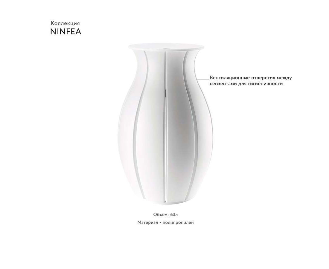 Корзина состоит из десяти сегментов, напоминающих лепестки цветка водяной кувшинки - нимфеи. Вентиляционные отверстия между сегментами делают корзину полностью гигиеничной и безопасной. Кроме того, она легко разбирается на части, благодаря чему ее удобно мыть, хранить и перевозить.