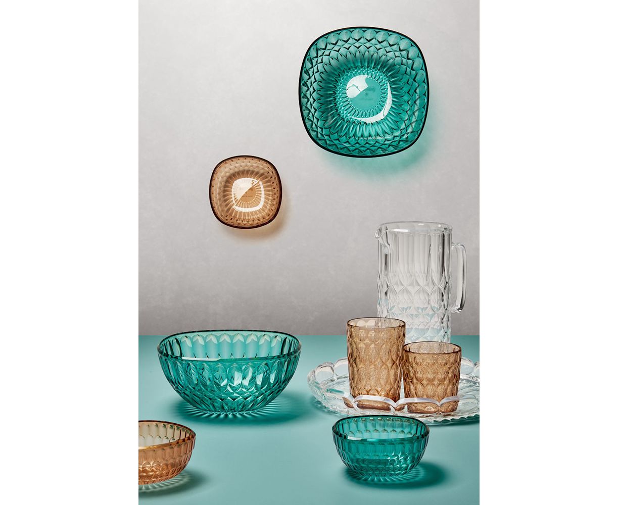 "Чаша Vanity от итальянского бренда Guzzini – необычная посуда из специального акрилового стекла, произведенного на биооснове из современного, органического сырья, которое получается из растительных отходов. Материал на 100%, подлежит вторичной переработке. За счет особенной рельефной поверхности предмет изящно переливается на свету, что делает его еще более привлекательным.