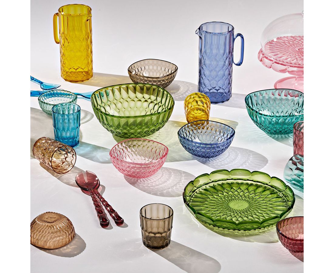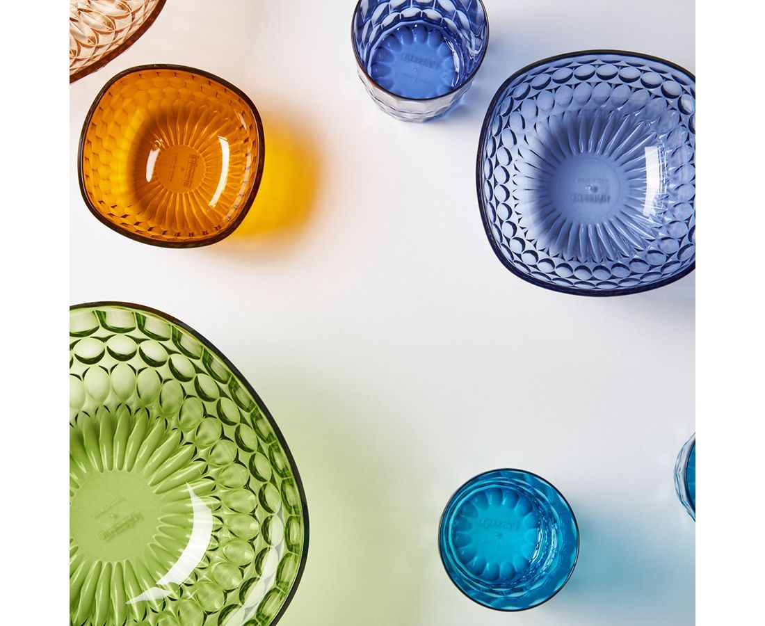 "Чаша Vanity от итальянского бренда Guzzini – необычная посуда из специального акрилового стекла, произведенного на биооснове из современного, органического сырья, которое получается из растительных отходов. Материал на 100%, подлежит вторичной переработке. За счет особенной рельефной поверхности предмет изящно переливается на свету, что делает его еще более привлекательным.