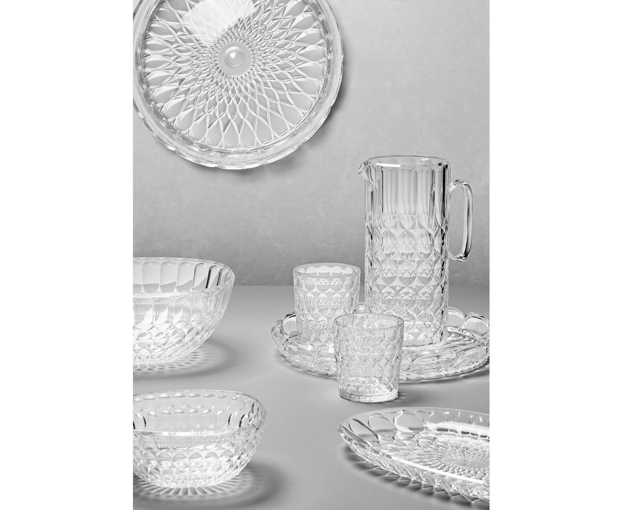 "Чаша Vanity от итальянского бренда Guzzini – необычная посуда из специального акрилового стекла, произведенного на биооснове из современного, органического сырья, которое получается из растительных отходов. Материал на 100%, подлежит вторичной переработке. За счет особенной рельефной поверхности предмет изящно переливается на свету, что делает его еще более привлекательным.