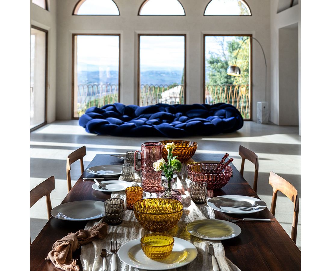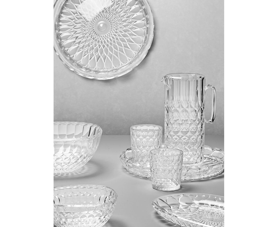 "Кувшин с крышкой Vanity от итальянского бренда Guzzini – необычная посуда, в которой гармонично сочетаются привлекательный дизайн и практичность. Благодаря высокой устойчивости современного органического материала к внешним воздействиям, она идеально подходит для сервировки как в помещении, так и на свежем воздухе. Инновационный биопластик получают из растительных отходов. За счет особенной рельефной поверхности и ярких цветов предметы изящно переливаются на свету, что делает их еще более привлекательными. Материал не темнеет со временем, не выделяет вредных соединений, не меняет вкус и запах содержимого.