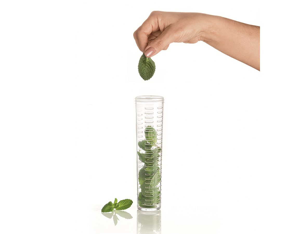 Внутри кувшина находится съемная колба-фильтр для кусочков лимона, фруктов, ягод, зелени и других ингредиентов, которые придают воде приятный вкус и аромат.